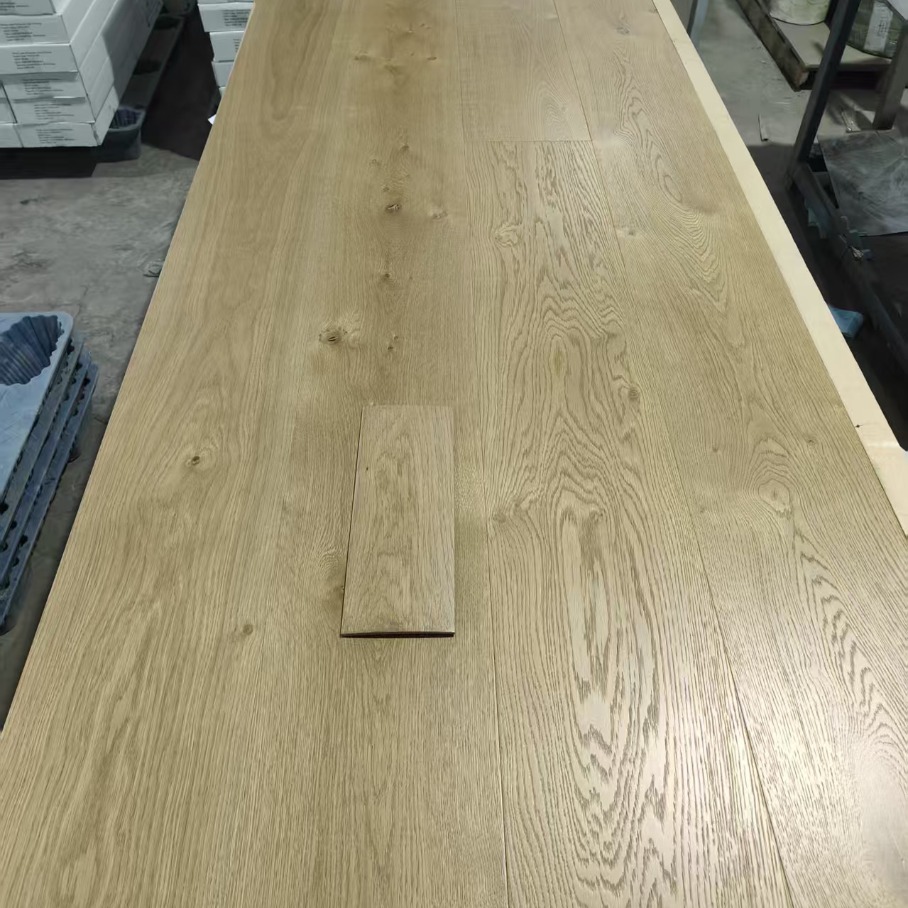 This solid oak slab flooring combines large-size design with reliable production capacity, making it suitable for wholesale and project-based supply.